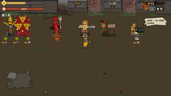 玩法介绍:香蕉兄弟是一款轻rouge割草游戏,玩家扮演香蕉战士痛击食品加工厂的爪牙门,在每一关的战斗过程中获取资源,在短暂的战斗间隔内花掉资源提升自己,并且可以构筑属于你的流派,在不长的时间内获得爆发式的战力提升,不断的变强去打击更强的敌人。