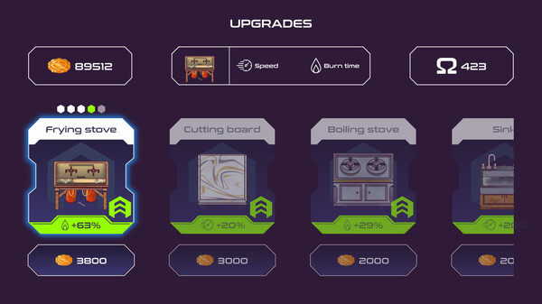 升级是游戏内的增强体系,可以改善您的游戏体验。随着您在烹饪的路上越走越远,您可以添置更高级的厨具,成为终极大厨,挑战越来越复杂的菜式。