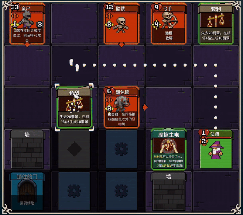 至于操作方式,那更简单了,看到哪里点哪里就行,轻松写意!另外,在冒险中你的卡组和敌人的卡组会洗混在一起。每个房间都会由双放卡牌随机布置,没发到想要的嘛?只需要献出一点小小代价贿赂发牌员,就可以再发一次!
