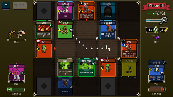 作为不一样的爬塔卡牌肉鸽,除了地板,一切都是卡牌组成。寻剑迷途恰如其名,永远都在找武器的原因是,不只卷轴和药水,武器和防具也都是一次性的。不必担心,还记得它们都是卡牌吗?想同时拿多少把武器都可以,当然穿多少层防具也随意,它们会叠起来从顶到底逐张消耗,要做的就是利用有限的资源和无限的头脑登上塔顶。