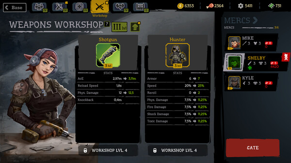 发展幸存者营地,解锁增益。在技能强化大厅升级佣兵技能,前往佣兵营招募新佣兵,在工坊强化武器和护甲。升级建筑可以提高佣兵生存几率。