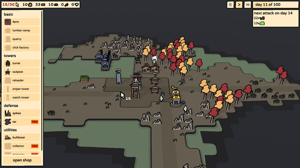 利用建筑,最大限度地分配点击数。例如,建造一座采石场,每次点击便能自动开采 3 份石材,或者建造点击工厂来获得更多点击数。