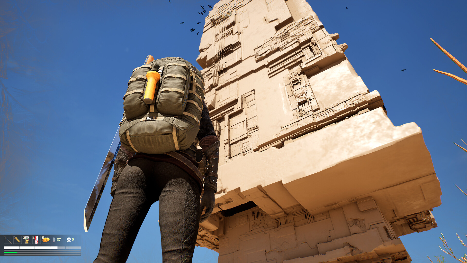 《喘息2》是一款单人生存游戏,荒废的游戏世界中,玩家将拾取杂物,食物,道具后使用制作台制作需要的物资,使用燃气灶烹饪食物。沙漠中有30个巨大的通风塔,通风塔附近隐藏着沙虫,当你杀死沙虫就能激活附近通风塔下的古老传送装置,传送装置只能在通风塔之间传送。寻找沙虫需要拥有机器人伙伴后才能找到同时机器人伙伴等级越高解毒能力越强,使用厕所、清洗装置、睡袋这些游戏道具可以更快的清除毒素。世界中遗留了一些笔记本,可以提供一些你需要的线索。