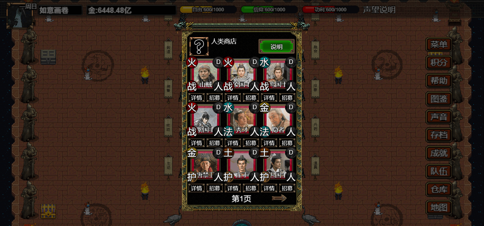 招募商店分为仙妖人(只能招募酱油角色作为融合的狗粮)