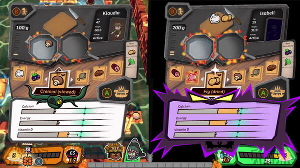 在分屏中与朋友竞争。选择你的角色、攻击和食材组合,以证明谁是正面对战中的顶级厨师。