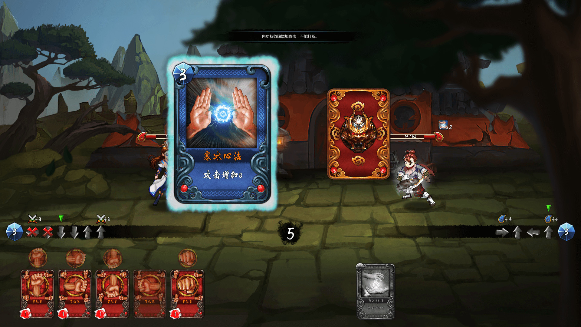打出轻功特效牌玩家可以看到敌人一定的手牌量。