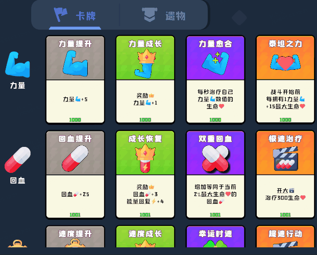 每次击败敌人都可以选择一张卡牌,卡牌将会有不同的强化方式。