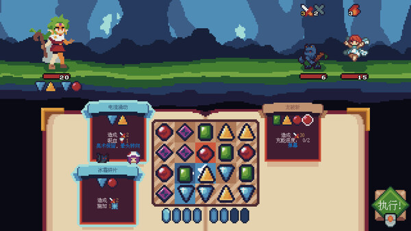 战斗时你将在石棋盘上连成路径;路径穿过你的法术施放要求时,便会按顺序施法。虽然没有时间限制,但敌人可是会反击的!他们的攻击不仅会造成伤害和负面状态影响,还会影响你的法术和石棋盘。