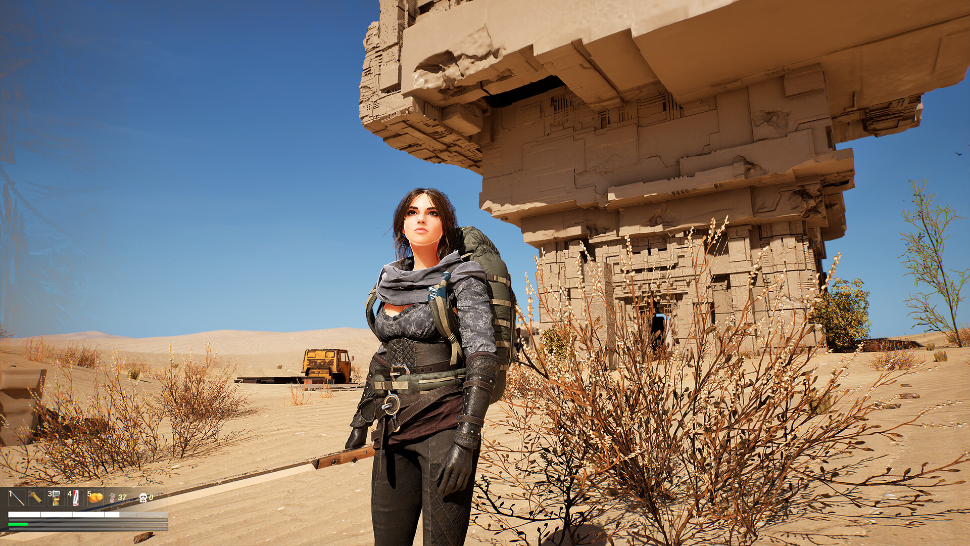 《喘息2》是一款单人生存游戏,荒废的游戏世界中,玩家将拾取杂物,食物,道具后使用制作台制作需要的物资,使用燃气灶烹饪食物。沙漠中有30个巨大的通风塔,通风塔附近隐藏着沙虫,当你杀死沙虫就能激活附近通风塔下的古老传送装置,传送装置只能在通风塔之间传送。寻找沙虫需要拥有机器人伙伴后才能找到同时机器人伙伴等级越高解毒能力越强,使用厕所、清洗装置、睡袋这些游戏道具可以更快的清除毒素。世界中遗留了一些笔记本,可以提供一些你需要的线索。
