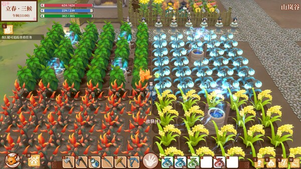 《一方灵田》是一款可以种田、可以修仙、可以经营山谷、还可以和诸多性格各异的NPC共同振兴门派的生活模拟游戏。