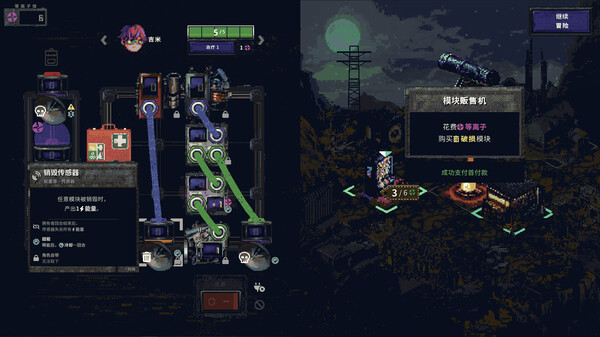 每回合你需要谨慎决定将电量引导到哪:导入爆能枪模块直接攻击敌人?还是导入治疗模块回血?或者将能量存入电池准备下个回合打一发大的?
