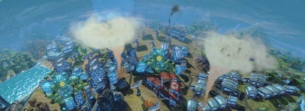 你将深切体会星际公司的利润目标与为人民保护生存条件的需要之间的巨大冲突。在你的殖民地发展的同时,废气排放和土地污染会影响全球气候。不断上升的气温融化了两极的冰冠,你们的殖民地被不断上升的海平面所摧毁。