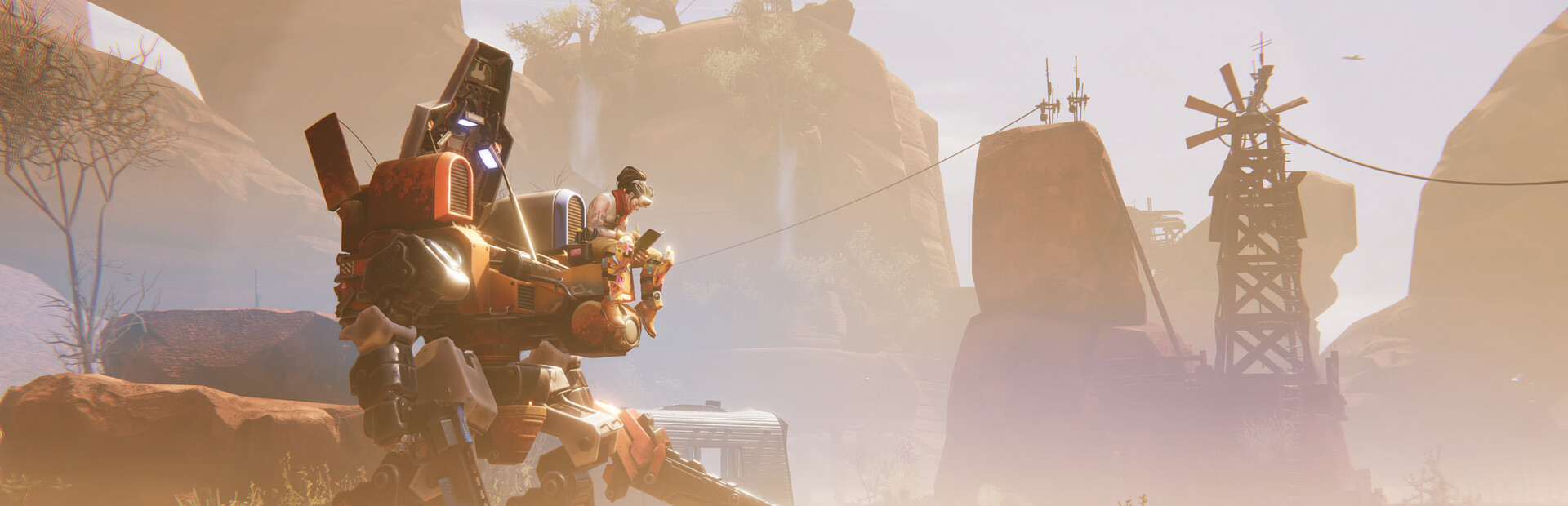 你操纵沙漠猛禽 MKII,一款极为强大的机甲。它是一种高度可定制的战斗机器,可以配备各种攻击系统:重型、高功率近战武器、蒸汽动力液压攻城武器、爆炸性火器等等。它还可以配备各种防御系统;高速推进器、冲刺助推器、防暴盾牌等。