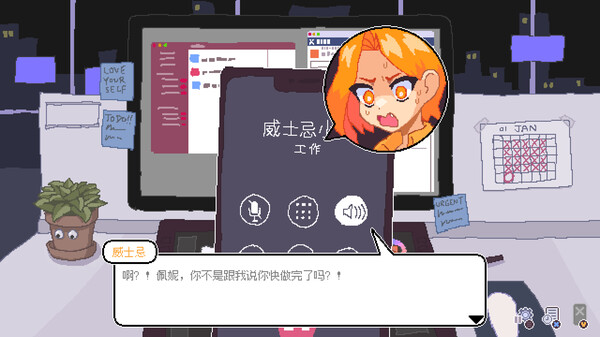 《永不结束的星期一:梦想与死线》是一款短篇视觉小说游戏。佩妮性格温顺,是某家大型企业的底层员工。她周末两天留在公司里加班,要努力排除同事、外星人、想象出来的朋友,以及自己的干扰, 及时交付项目。