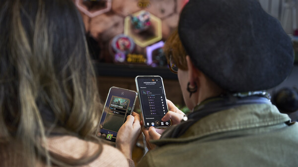 扫描显示器上的二维码,即可下载免费的《Sunderfolk》手机应用程序*(适用于 iOS 和 Android 系统),可以将您的手机或平板电脑变成控制器、卡牌、规则书、物品栏等游戏用品。亲朋好友都可以迅速上手这款游戏,因为他们所需的所有信息都会显示在掌中的手机或平板电脑上。