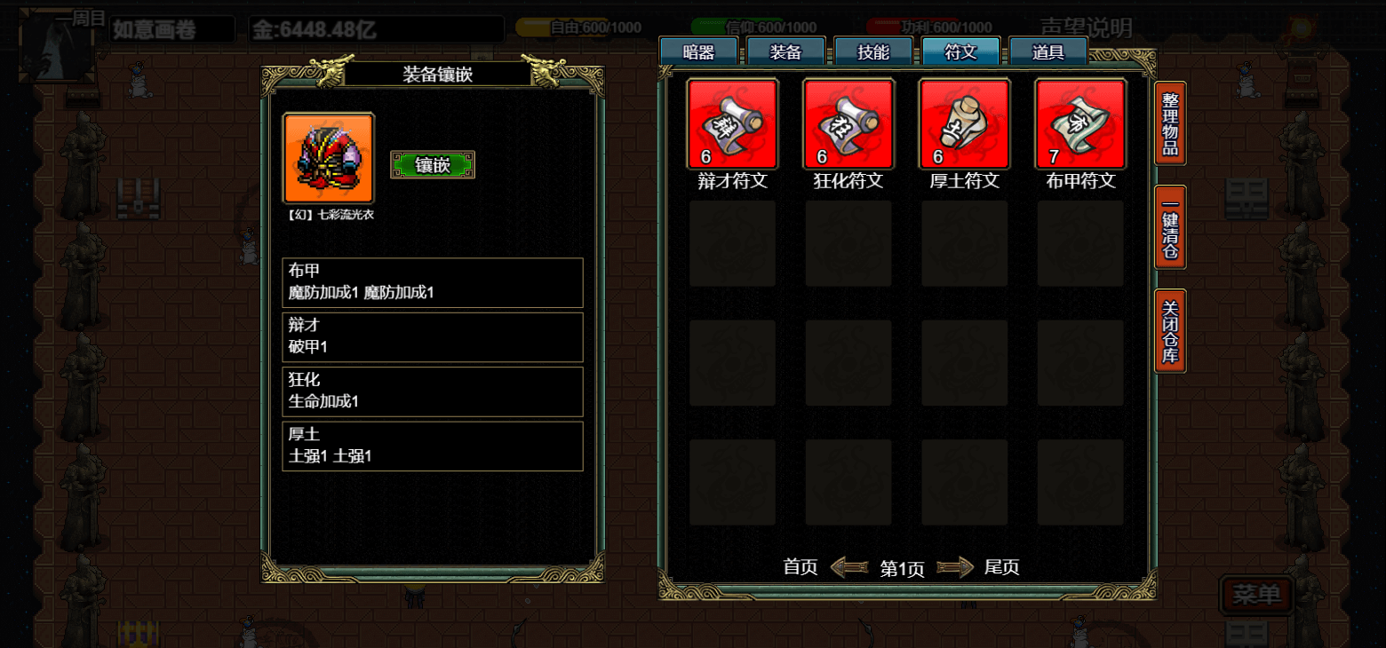 其中镶嵌页面是给装备增加一个修为词条如下图所示(注:有该词条的装备需要对应的修为足够才能穿上)(符文可以由战胜对面的挑战npc获得,三级地图的宝箱中也可能开出)