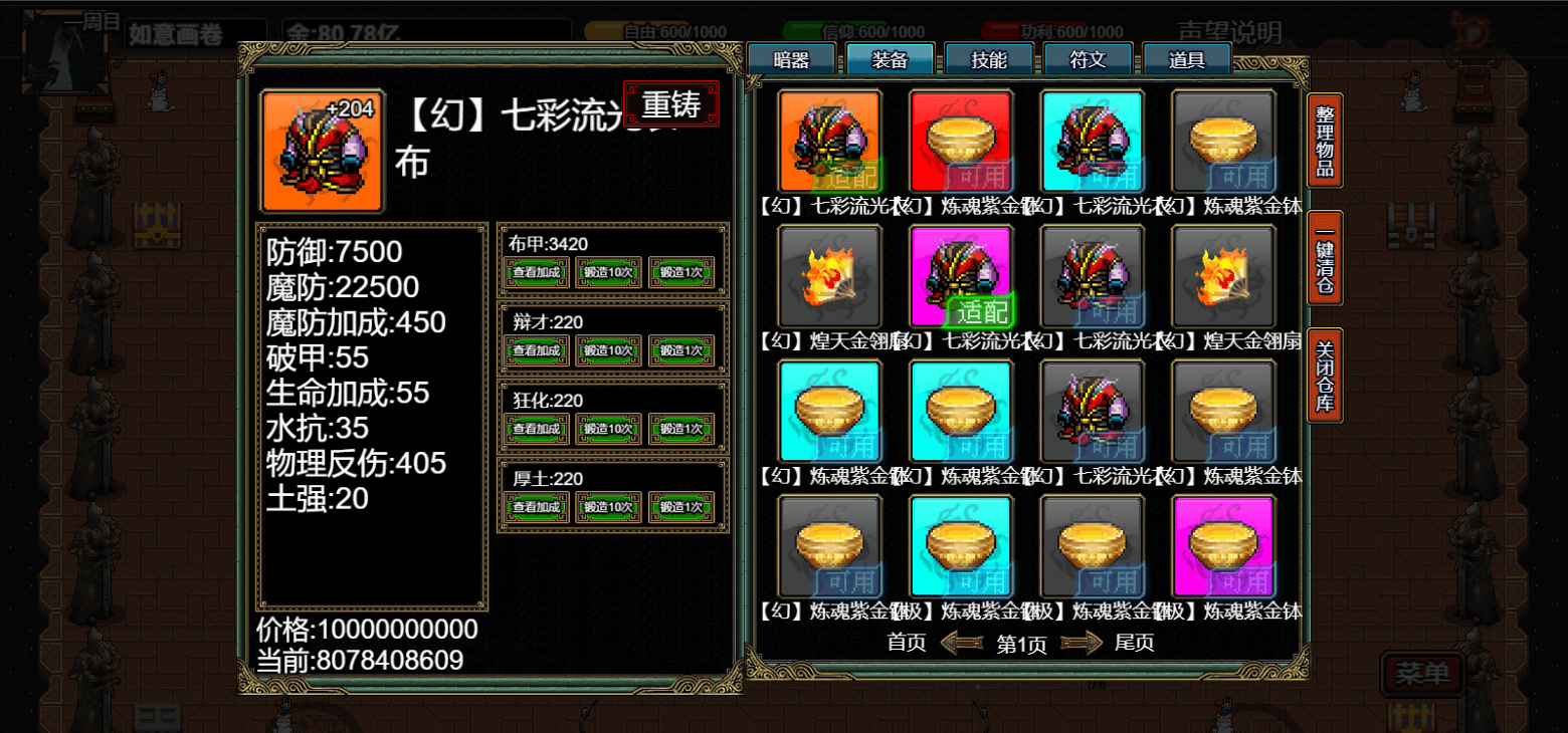 锻造页面可以锻造仓库中的装备,如已经穿在身上需要脱下来。(锻造后穿着的要求会提高,请注意角色的修为是否能够达到穿戴的要求)
