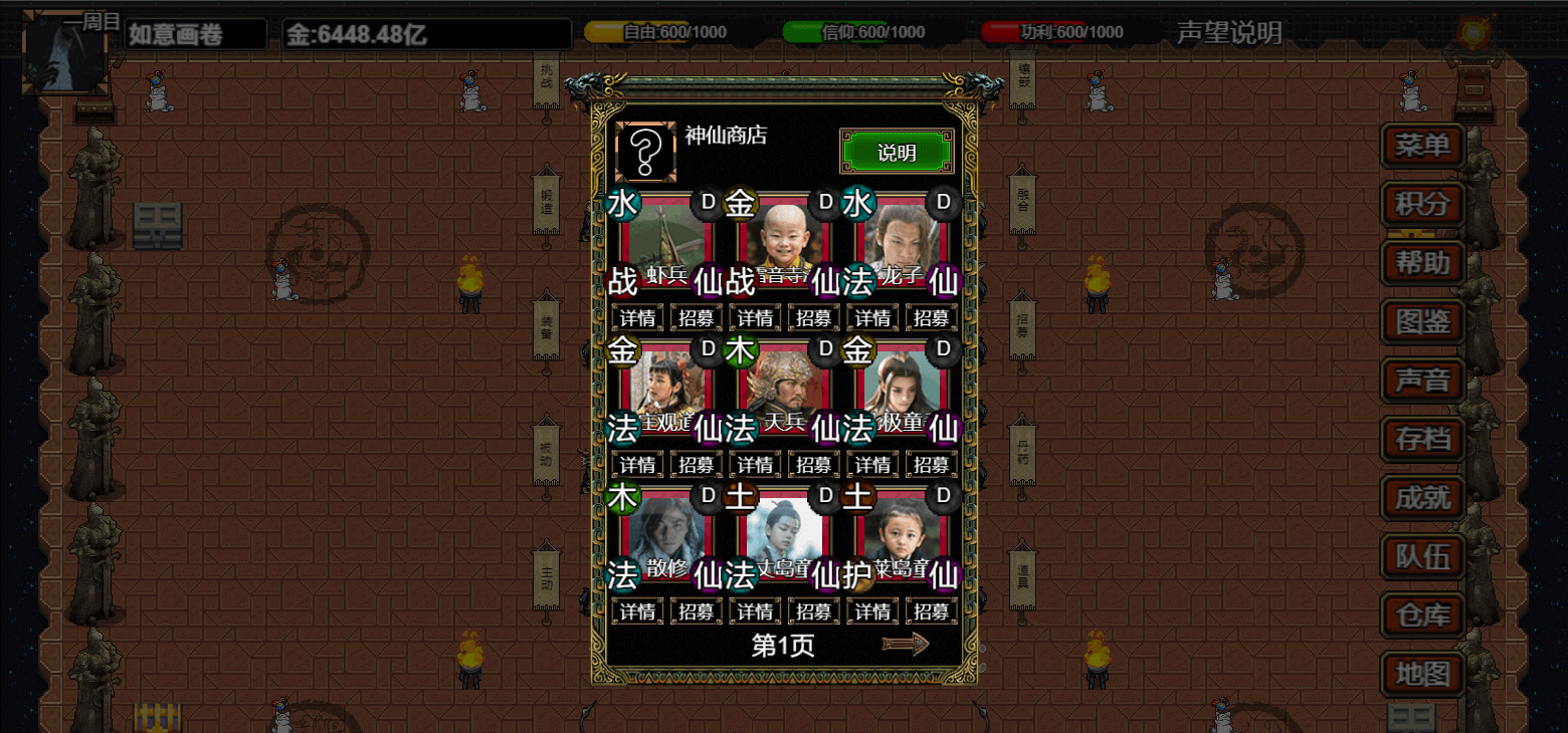招募商店分为仙妖人(只能招募酱油角色作为融合的狗粮)