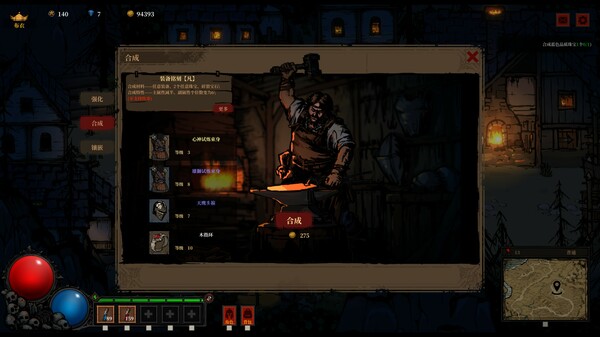 合成:装备还可以能过合成,打造成其它的不同装备,可以在铁匠师傅中了角更多的细节。