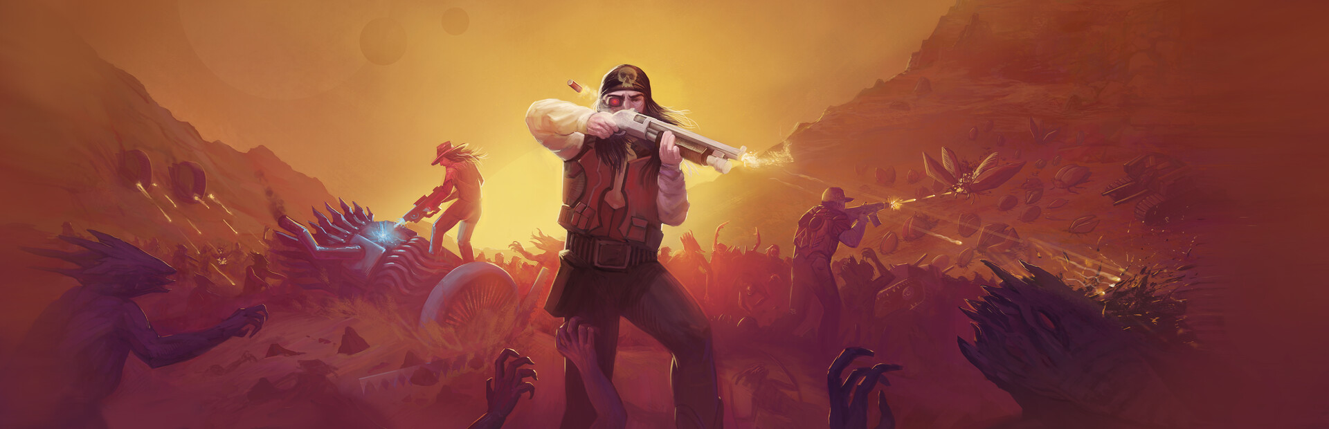 你——隶属于“Sons of a Gun”组织的孤胆佣兵,每当问题需要靠火力解决时,你就是不二人选。在这片荒芜的星球上,你将面对成群的异形怪物,它们如潮水般涌来,试图吞噬一切。
