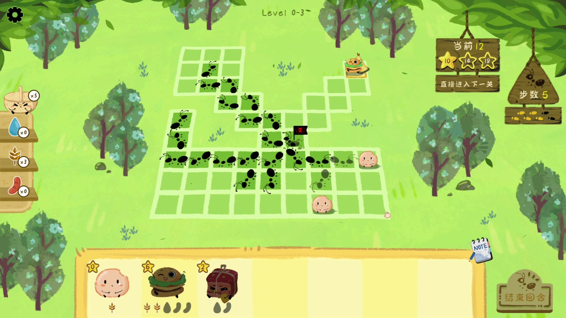 蚂蚁的嗅觉灵敏,且移动速度极快。你将如何调配有限的资源,结合各种食物的独特能力,巧妙地布局,与蚂蚁展开一场智力较量?是选择用敷衍了事的半成品引诱蚂蚁去其他地方,还是在宝贵的野餐毯附近布置罐头来进行防守?